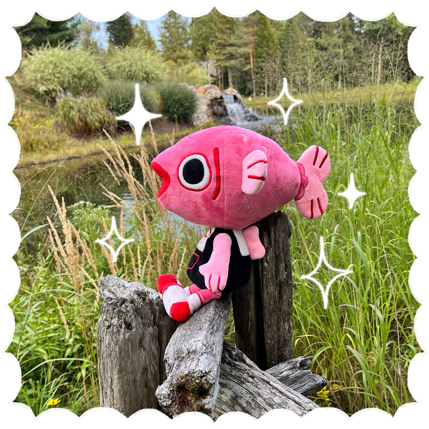 Fish Head is based on a previous flash design that I tattooed a year ago. I have always been obsessed with the silliness of fish, and this friend is an amalgamation of all my favorite design elements, in fish form. I love them with all my heart, and I hope you will love them too. As a toy collector and a fan of silly little guys, it has been a dream of mine to have my designs come to life in the form of a plush friend.